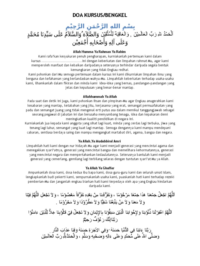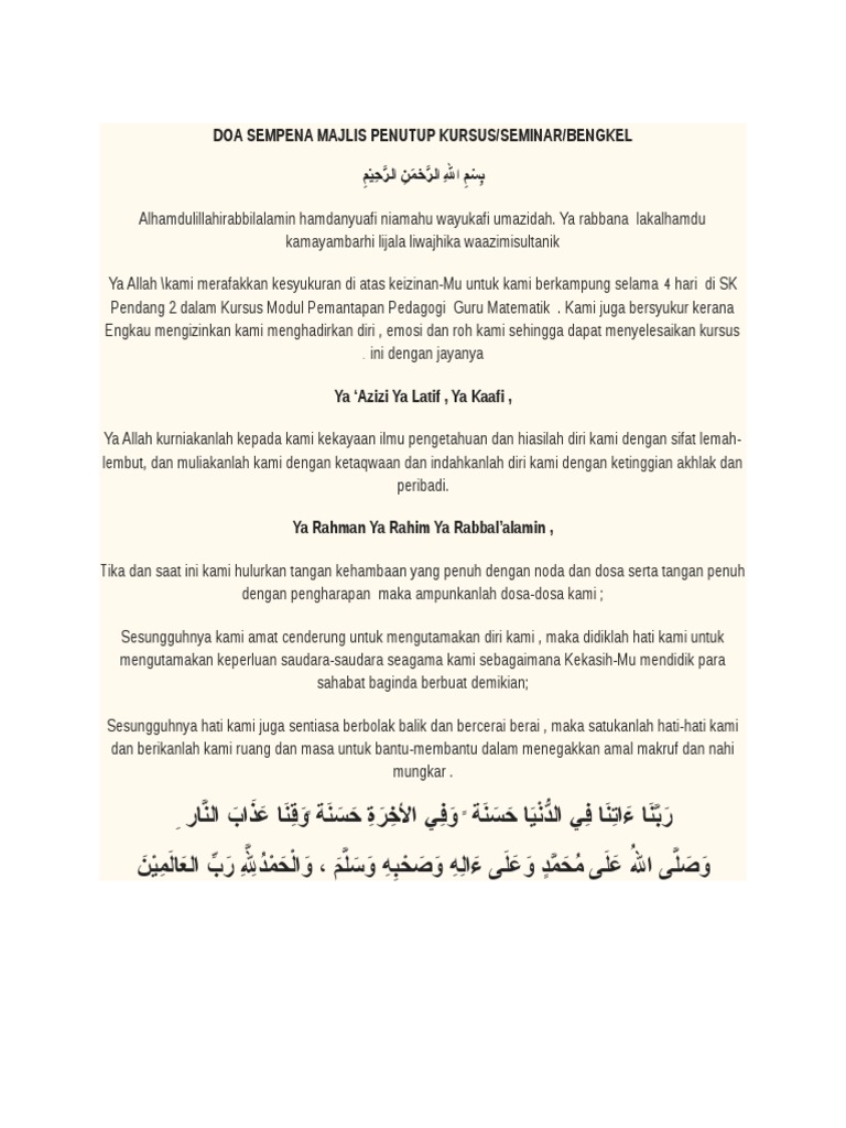 Doa Sempena Majlis Penutup Kursus Pdf